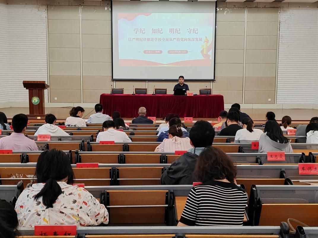 为深入学习贯彻习近平总书记关于全面加强党的纪律建设的重要论述精神,推动党纪学习教育走深走实,6月19日下午,betway西汉姆联官网在北校区化工楼报告厅开展党纪学习教育专题党课。学院党委书记庞辉主讲,全体教职工参加。