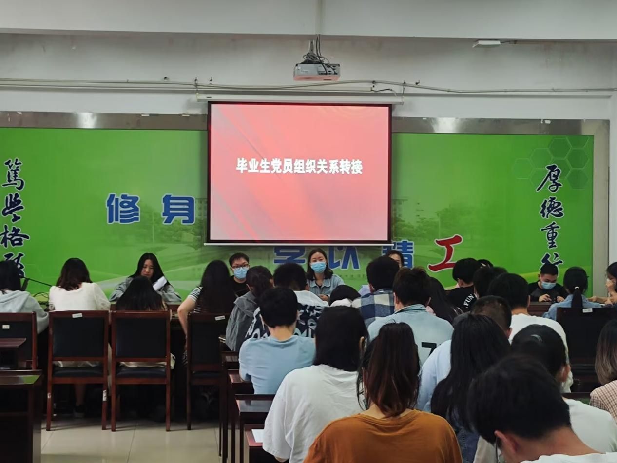 会上,唐智倡议毕业生党员牢记党员身份,充分发挥党员的先锋模范作用,积极履行党员义务,站好安全文明离校的最后一班岗,做一名优秀的学生党员。随后,唐智对毕业生党员党组织关系转接进行了专题培训,强调了党组织关系转接的流程、注意事项和需要的材料等具体要求,并对各位党员提出的问题进行了详细的解答。