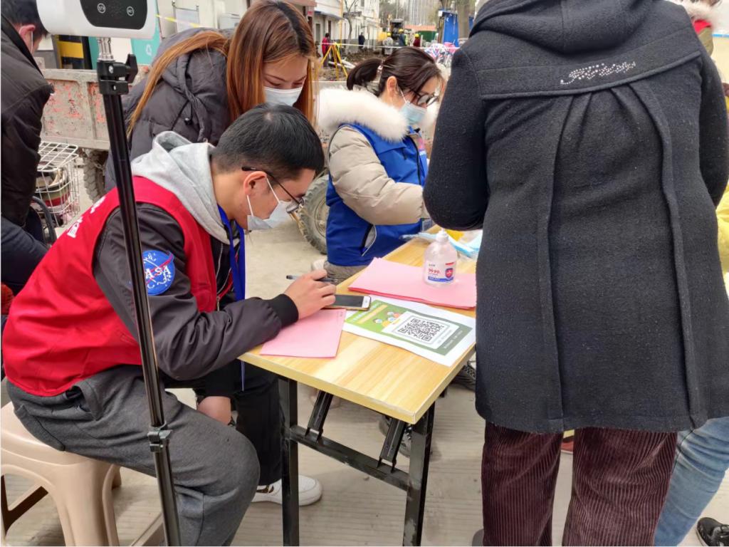 党员志愿者在五星街道印汽新村社区核酸监测点引导群众使用新冠病毒核酸检测信息系统,耐心提醒长者佩戴好口罩,维持核酸检测现场秩序,以实际行动助力美丽新江苏建设,迎接党的二十大胜利召开。