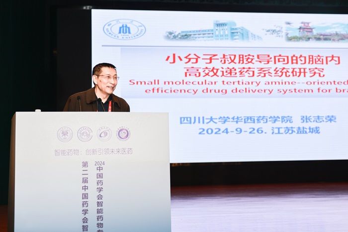 特邀报告环节,张志荣院士作了题为“小分子叔胺导向的脑内高效递药系统研究”的报告;朱为宏院士作了题为“激发态调控:理性设计近红外荧光探针”的报告;江南大学胥传来教授作了题为“面向阿尔兹海默症的手性纳米药物研发”的报告;刘颖斌教授作了题为“胆道肿瘤的临床与基础研究”的报告;郭子建院士作了题为“铂类抗肿瘤药物的智能活化与传送”的报告;北京大学刘志博教授作了题为“放射性药物与放疗相应药物”的报告;四川大学黄园教授作了题为“亚细胞靶向递药系统的研究”的报告;闽江学院贾力院士作了题为“全球智能药物研发现状与未来发展方向”的报告。