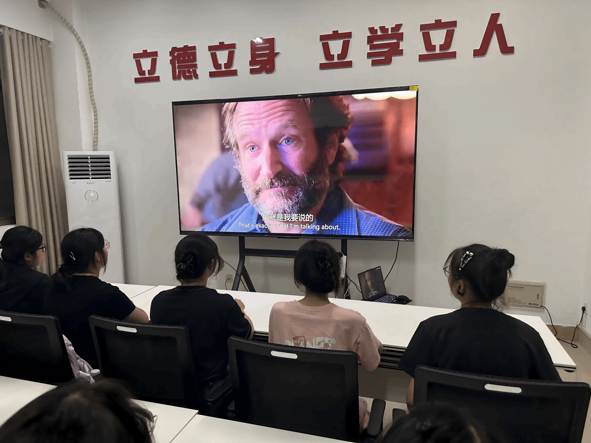 《心灵捕手》这部电影讲述了天才青年威尔是如何在心理学家肖恩的帮助下,逐渐克服童年创伤,并找到自我价值的故事,深刻剖析了人性的坚韧与脆弱,传递了即使面对心理困境也要勇敢面对的精神内核。在观影过程中,同学们认真观看,为威尔不屈不挠的乐观心态所震撼,懂得了心理健康和个人成长之间的强大联系,以及如何通过正面的人际关系促进内心的治愈,同时也有了面对困难永不服输的韧劲,以及敞开心扉、正确面对自身不足的勇气。