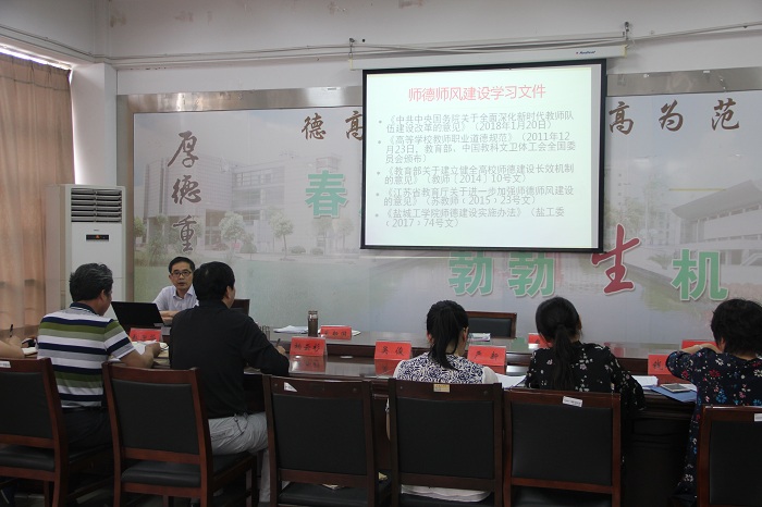 5月16日下午,betway西汉姆联官网在学院会议室召开师德师风学习研讨会。研讨会由党委书记谢毅敏主持,院长奚新国、副院长戴勇、党委副书记江滔以及全体教职工到会参加。