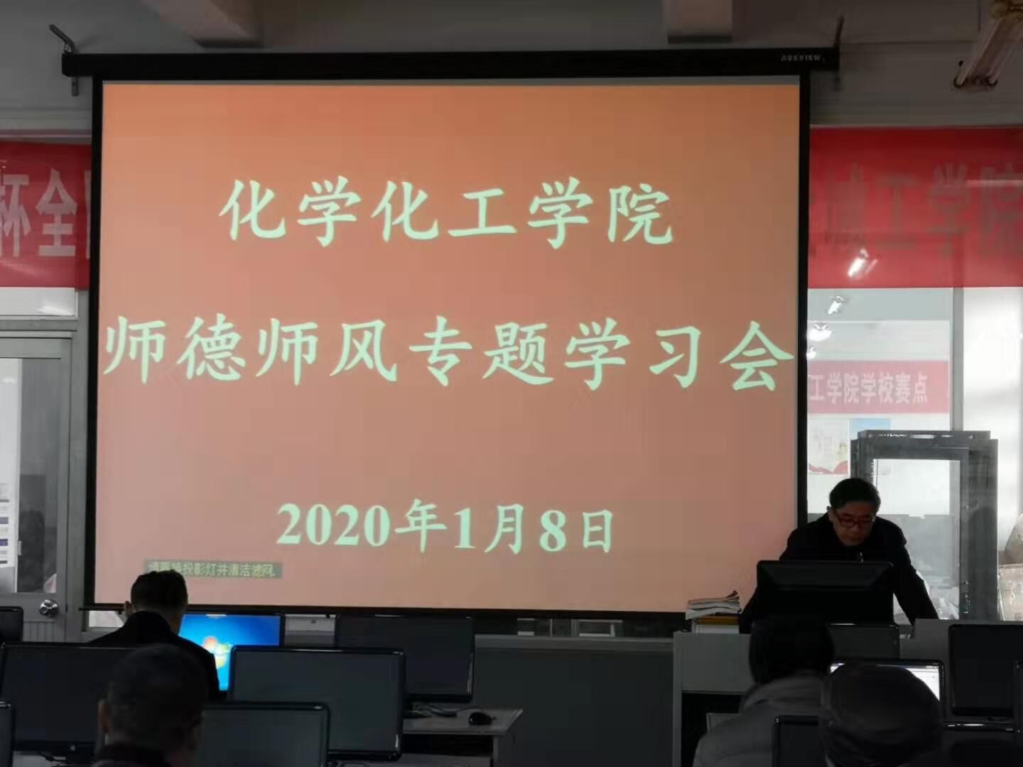 2020年1月8日下午,betway西汉姆联官网在北校区体知楼二机房召开师德师风专题学习会,学院全体教师参加学习,学院党委书记谢毅敏主持。