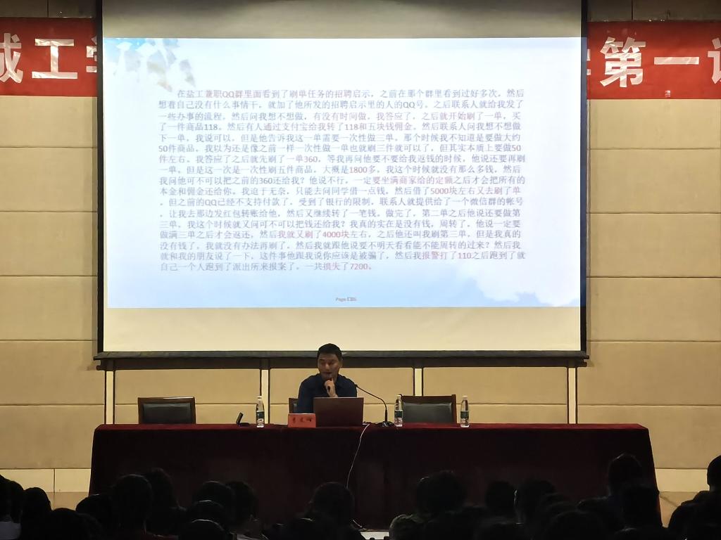 李义峰主要从人身、财产、交通、网络、宿舍等几个方面,用幽默风趣的语言,通过发生在同学们身边具体案例的剖析,对同学们如何防骗、防盗、防火和防传销等安全问题进行了详细的讲解,告诫同学们要提高安全防范意识,杜绝宿舍安全隐患,保障自身生命财产安全,时刻做一个懂法守法公民。