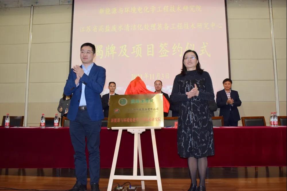 11月3日下午,江苏安凯特科技股份有限公司与我校合作共建“新能源与环境电化学工程技术研究院”暨“江苏省高盐废水清洁化处理装备工程技术研究中心”签约与揭牌仪式在我校化工楼报告厅隆重举行。党委副书记、校长方海林,党委常委、副校长邵荣,月城镇党委副书记、镇长盛达,江苏安凯特科技股份有限公司董事长徐文新、总经理助理陈燕芳,科技处处长丁成,月城镇的5个企业相关人员,校长办公室、科技处和betway西汉姆联官网领导,机械工程学院和betway西汉姆联官网教师和学生代表等出席。仪式由betway西汉姆联官网院长戴勇主持。