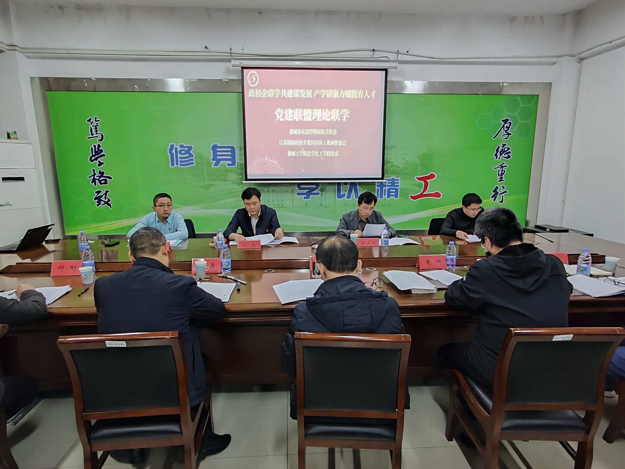 11月22日下午,betway西汉姆联官网党委以“政校企联学共建谋发展 产学研聚力赋能育人才”为主题,在学院201会议室组织开展党建联盟理论联学联建活动。校党委第一巡学旁听组组长谢毅敏、成员王丽坤到会指导,盐城市应急管理局机关党委专职副书记仇伟、法规处处长宋杰、江苏滨海经济开发区沿海工业园管委会副主任潘成杰、安委办主任徐焱参加活动并作重点发言。学院党委书记庞辉主持会议,学院党委理论中心组全体成员参加。