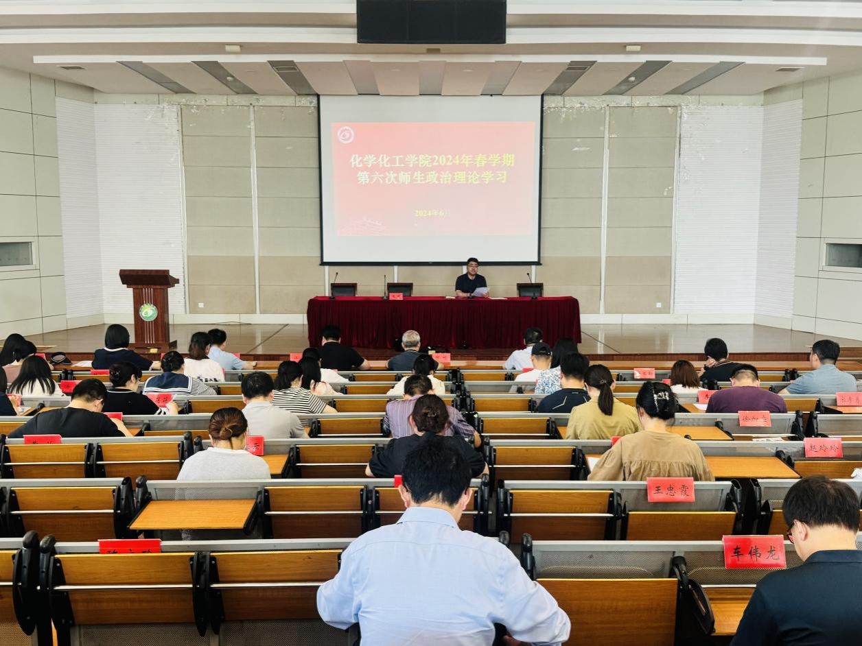 6月14日下午,betway西汉姆联官网在北校区化工楼报告厅组织开展2024年春学期第六次师生政治理论学习。学院党委书记庞辉主持,学院全体教职工、学生党员和学生干部代表参加学习。