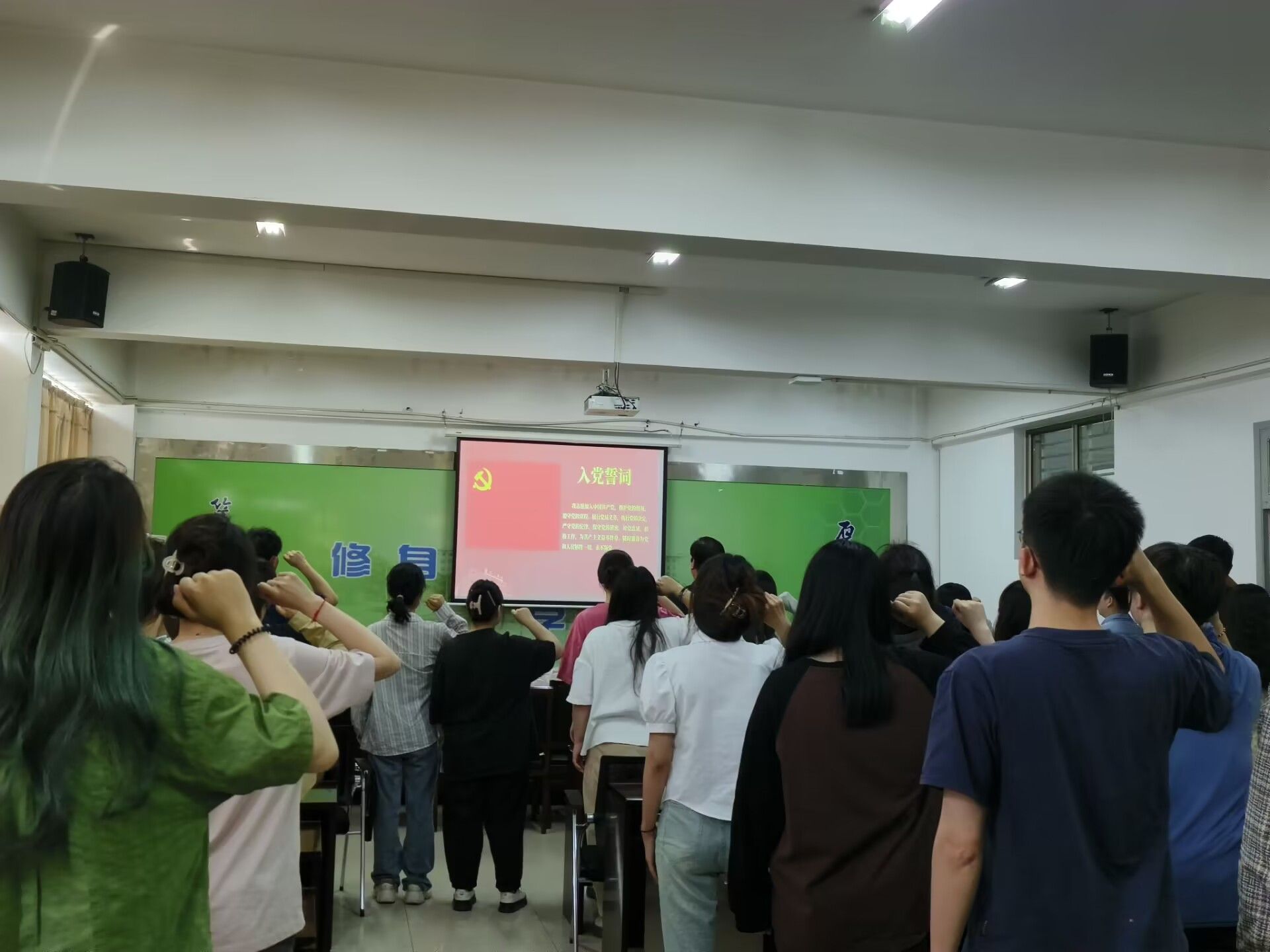 最后,全体师生党员举起右拳,重温入党誓词,用铮铮誓词宣示了马克思主义信仰、共产主义信念以及对党和人民的忠诚,在誓言中砥砺初心使命,赓续中国共产党人的精神血脉。