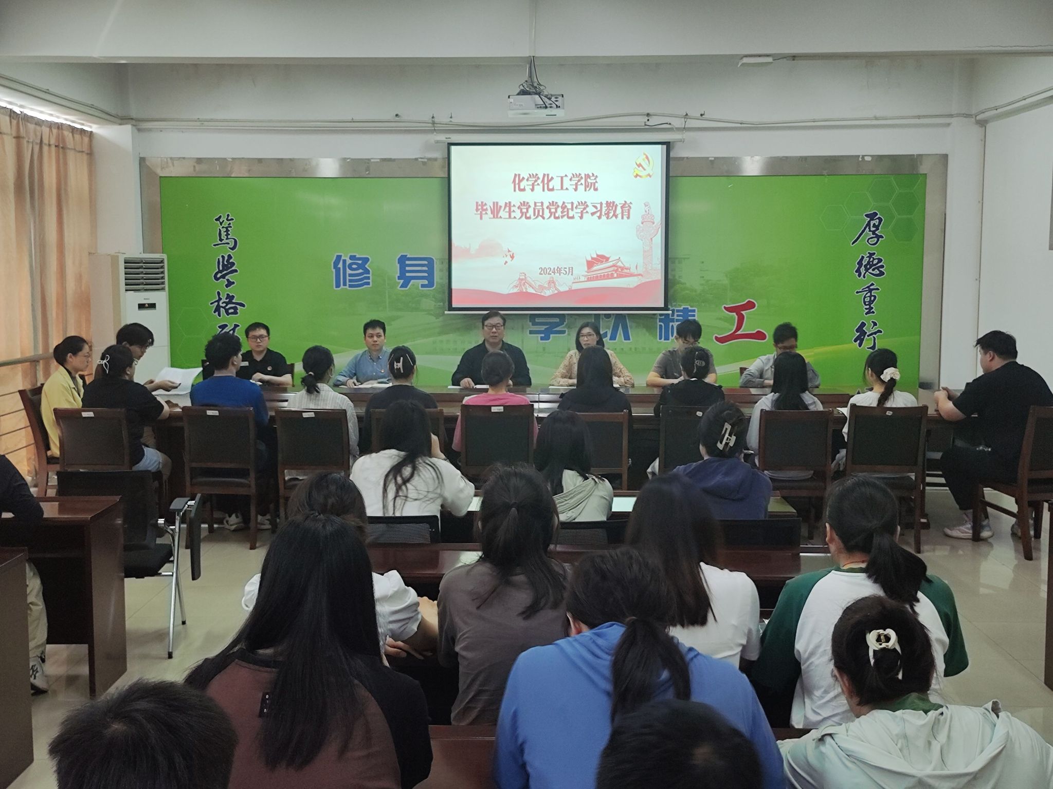 学院党委副书记江滔解读《中国共产党纪律处分条例》的历史沿革、科学内涵和实践要求,分析当前学生党员在党章党规党纪学习和践行过程中存在的问题,以及学生党员接受党纪学习教育的紧迫性、重要性和必要性。他强调,毕业生党员要把学习《条例》作为当前最大的政治任务,入脑入心,防微杜渐,守好“责任田”,尽职尽责站好“最后一班岗”。