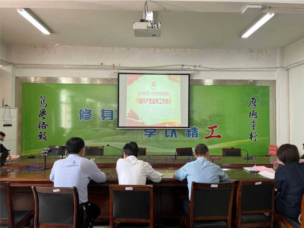 副院长祁刚领学《中国共产党宣传工作条例》。他指出,《中国共产党宣传工作条例》为我们宣传工作提供了基本遵循,学院要贯彻学习,着力推动宣传思想工作开创新局面。他希望,学院各级党组织要充分利用“学习强国”等平台加强理论学习,全面提升思想认识,在比学赶超的浓厚氛围中提高政治站位,着力增强“四个意识”,不断坚定“四个自信”,坚决做到“两个维护”。他强调,对照《中国共产党宣传工作条例》“坚持正确政治方向,舆论导向,价值取向,把握好时度效,唱响主旋律,弘扬正能量”的要求,学院要加强正面宣传和舆论引导,着力强化学院网络阵地建设和网络传播平台的管理。