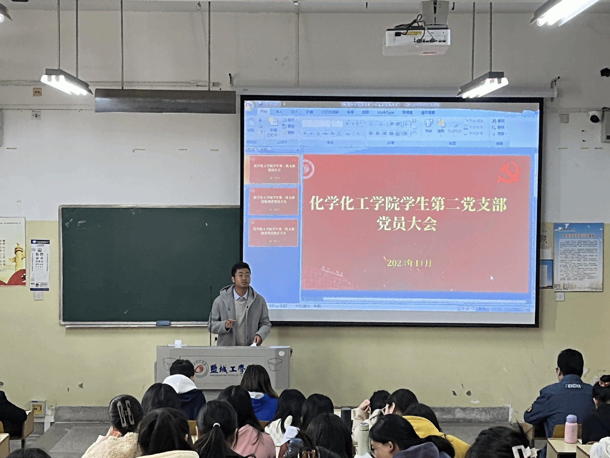 会议根据校党委组织部《关于做好2023年度发展党员工作的通知》(盐工委组〔2023〕6号)文件要求进行,同时严格按照党章规定的程序,逐个讨论和表决。各发展对象从对党的认识、入党动机、本人履历、家庭成员及主要社会关系情况和现实表现等方面逐一进行汇报,入党介绍人介绍发展对象的培养和考察情况,各支部组织委员报告发展对象的审查情况,与会党员发表意见并对发展对象能否入党进行讨论。经支部和与会党员无记名投票表决,同意接收22名发展对象为中共预备党员。