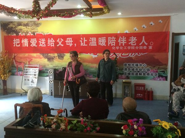 “把情爱送给父母,让温暖陪伴老人”。为了弘扬中华民族孝敬父母,珍惜亲情的传统美德。 2016年5月8日,我院分团委志愿者联合校瑜伽社成员来到盐城市朝阳新区慈悦托付中心开展“感恩母爱,情系慈悦”母亲节活动,将志愿者心中的爱带给这些孤独的老人。