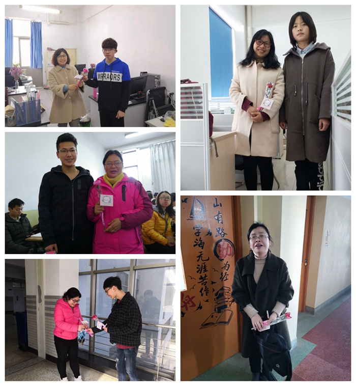 初春的清晨已经褪去寒气,betway西汉姆联官网校园更是洋溢着温暖的气息,特别是化工学院女教职工们心理充满了甜蜜和幸福。为庆祝第109个三八国际妇女节,化工学院学生自发组织了“一枝鲜花送老师,一张卡片表祝福”活动,小小心意表达对学院女老师的感谢和祝福。 3月8日早晨,化工学院学生干部自发在学院实验楼、教学楼、办公室手捧鲜花为广大女老师们送去节日的祝福:“谢谢老师辛勤的付出,节日快乐,老师您辛苦了”。一句简单的问候一张温馨的卡片,让收到祝福的女老师们倍感幸福。“一大早过来上课,看到学生拿着花笑盈盈地站在门口,确实是很大的惊喜,特别感动甚至有些骄傲,谢谢可爱的学生们”化学工程系系主任吴俊老师很动情地说。“我们也很开心在这样一个特殊的节日给女老师送去祝福和感谢,看到平时严肃的老师们笑得那么开心我们感觉更幸福”,活动的策划者徐耀说。收到祝福的女老师们纷纷表示:在这样特殊的日子里,不仅有鲜花、有祝福,学生的一句“您辛苦了”更是觉得为学生操劳再苦再累也值得。美丽的鲜花和老师们的笑脸融汇在一起,是今天校园里最美的风景。 学院党委书记谢毅敏说:学院近年来一直重视对一线教师的人文关怀,利用这样特殊的节日为老师送去祝福,表达化院学子对女老师的感恩情怀,这些活动正是学院一直以来加以引导的尊师重道,让老师有归属感和幸福感。 手上有花,肩上有责,心中有梦,学院女老师表示将会继续发扬“巾帼不让须眉”之势,为学院的发展贡献自己力量,谱写学院新的篇章。