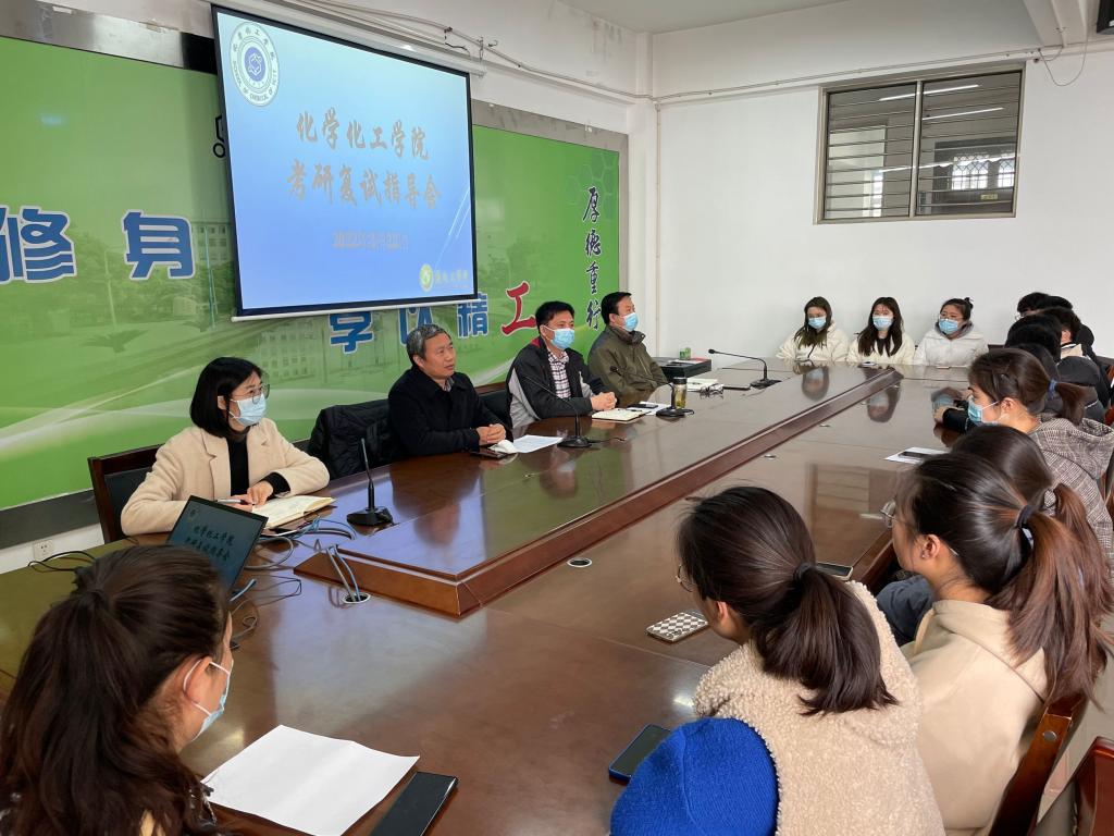 为帮助考研达国家线的同学明确方向,把握重点,坚定信心,从容应对复试及调剂环节,顺利考上硕士研究生。3月21日至3月22日,betway西汉姆联官网在学院201会议室按照专业分三批召开了研究生复试与调剂工作指导会议。学院党委书记高健、副书记江滔、学工办主任李慧、应用化学系主任张蓓蓓、化工专业系主任谷峰、化工专业系教授仓辉、制药工程系教授孙国香参加会议并为2022届考研通过国家线同学做复试与调剂指导。