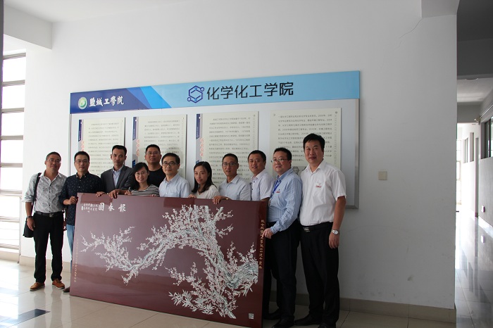 9月27日下午,张如祥、贾红圣等8位校友代表返回母校betway西汉姆联官网,代表全体精细化工97级专科班校友向化工学院、优培学院捐赠了两幅大型扬州漆器挂件,其中:捐赠给化工学院的《报春图》长2.4米、高1.2米。化工学院党委书记谢毅敏、副院长戴勇、党委副书记江滔、优培学院党总支副书记李刚等参加捐赠仪式。