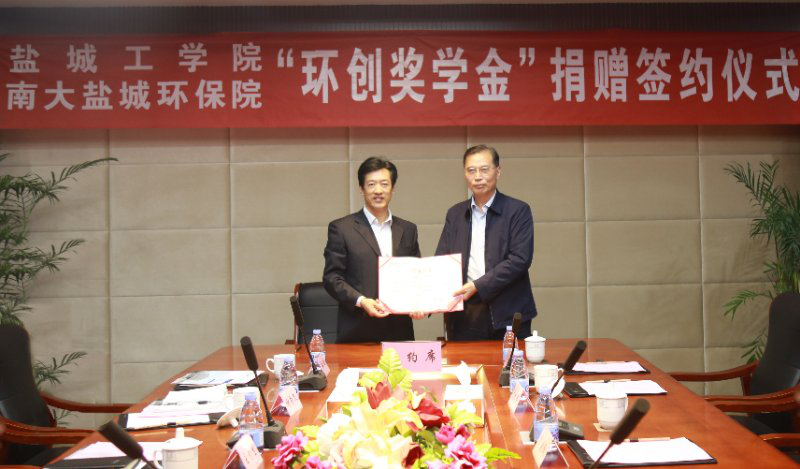 签约仪式上,李爱民表示希望能以“环创奖学金”为种子基金,资助奖励我校环境等相关学科在读学生,鼓励他们认真学习,争取好的成绩;希望与学校加强科研合作,共同投身于环保方面的科学技术研发及产业转化等相关事业中。王资生对研究院的捐赠表示了诚挚的感谢,并向研究院介绍了学校近年来在凸显环保办学特色方面取得的成绩。他说,研究院在我校设立奖学金,惠至化工、环境、海生等相关学科,此举延续了长久以来研究院对我校和我校学生的关切之情。双方长期的友好合作,对学校相关学科建设起到了重要的作用。学校坚持服务地方经济社会发展为己任,尤其在发展绿色经济方面学校更是敢为人先、勇挑重任。希望双方能借此机会,在人才培养、课题项目申报、科研人才科研能力提升等方面深入合作,进一步扩大学科影响力,提升双方的整体实力。