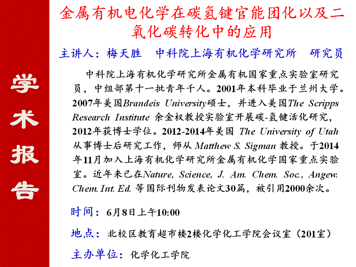 【预告】中科院上海有机研究所梅天胜研究员来校作学术报告