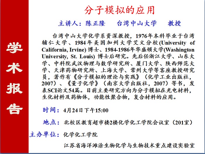 【预告】台湾中山大学陈正隆教授来校作学术报告