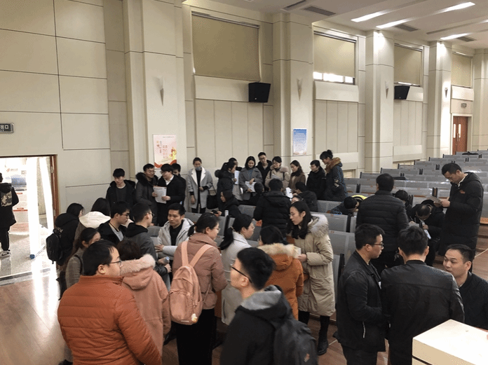 本次招聘会共邀请盛虹石化集团有限公司、药明康德新药开发有限公司、苏州精瑞化学股份有限公司等13家企业前来参会,涉及化工、制药、应化、材料和生物等专业毕业生。招聘会分为招聘单位宣讲、面试、签约等环节。各招聘单位在宣讲时向毕业生着重介绍了企业优势、岗位薪资待遇、职业发展前景。截止晚上八点半,共有80余名学生与参会招聘单位达成就业意向,17人现场签约。