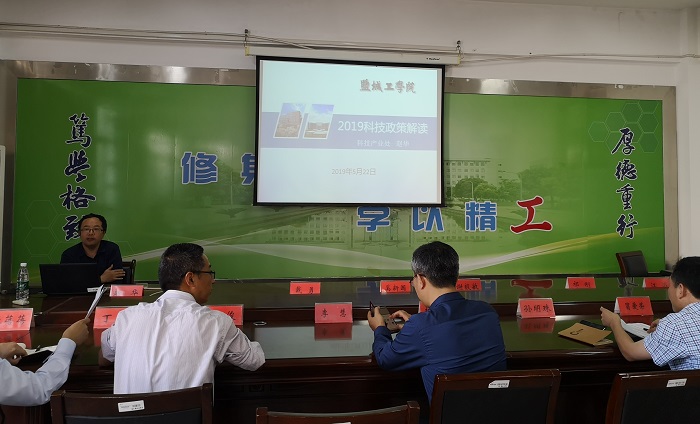 5月22日下午,科技产业处赵华副处长来化工学院作“盐工 2019科技政策解读”专题讲座。化工学院院长奚新国、学院党委书记谢毅敏、学院副院长祁刚、副院长戴勇、学院党委副书记江滔带领全院教师参加本次讲座。赵华副处长就betway西汉姆联官网2018-2019年期间发布的科技文件进行了详细的解读。