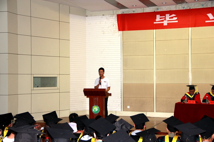 在校生代表制药161班陆鸿飞向即将毕业的大四学长学姐们送上衷心的祝福,表达他们对自己三年来的帮助与提携。他衷心地祝愿学长学姐们能在漫漫人生的征途中,能找到自己的理想天地,能常回母校看看。