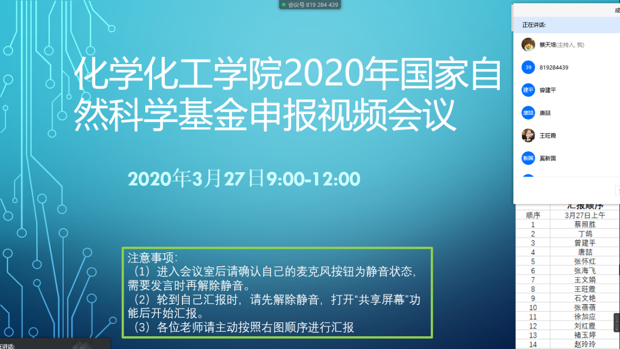 3月26日下午和3月27日上午,betway西汉姆联官网利用“腾讯会议”平台组织召开了2020年国家自然科学基金申报视频汇报会。betway西汉姆联官网院长奚新国和我院李红波教授出席会议,学院2020年度申请国家自然科学基金的各位老师参会。学院副院长戴勇主持会议。