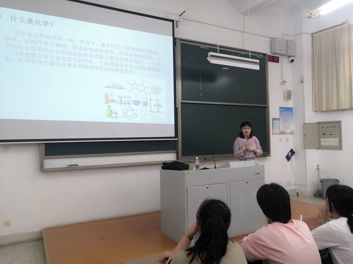 应用化学专业系主任张蓓蓓从了解新生化学基础、今后学习生活、实验室操作要求和大学重点化学实验等四个部分对应用化学专业进行了专业和课程介绍,以视频的形式让同学们了解到了与化学有关的衣食住行以及今后的就业去向,让同学们对未来大学四年的学习生活有了初步认知和规划。