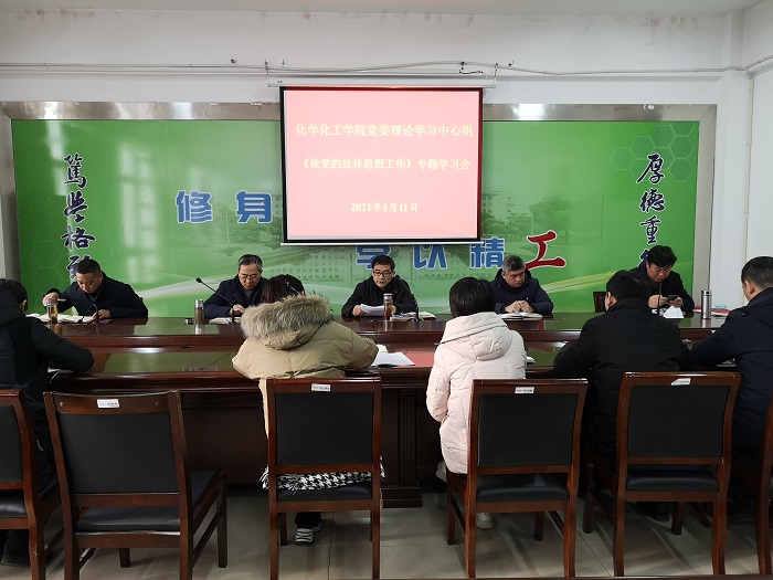 1月11日上午,betway西汉姆联官网党委理论学习中心组在北校区学院201会议室,召开2021年第一次集中学习会议。会议分两个阶段,第一阶段,召开中心组扩大会议,学院处、科级干部、各党支部书记、各专业系(教研部、实验中心)主任和全体专兼职辅导员参加此次学习,专题学习《论党的宣传思想工作》;第二阶段,全体中心组成员参加,研讨如何学习贯彻《中国共产党基层组织选举工作条例》,如何做好校园安全稳定工作。学院党委书记谢毅敏主持。