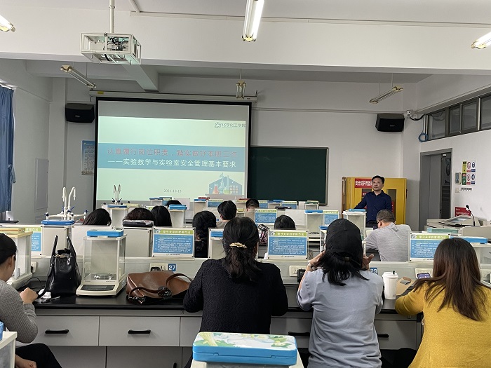 冒爱荣以“认真履行岗位职责,踏实做好本职工作”为题,结合岗位职责,对实验教学管理、实验室安全管理等工作提出了具体的要求,要求大家系统学习实验教学和实验室安全管理文件,进一步规范实验教学和实验室安全管理工作。
