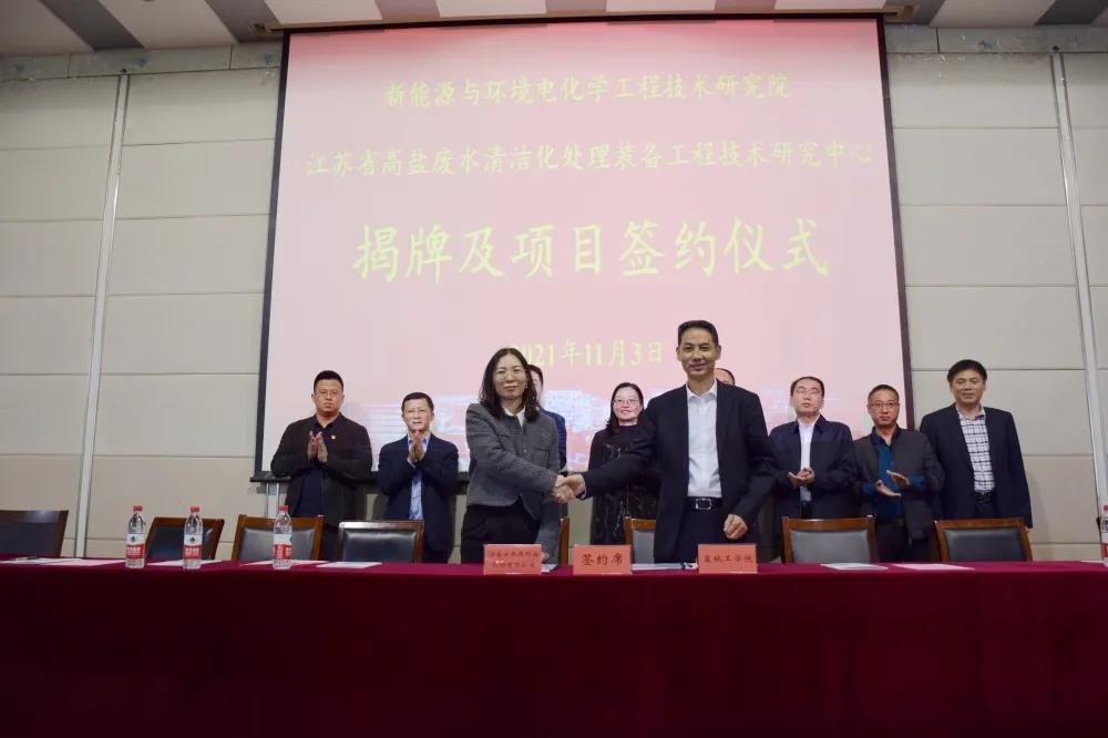 11月3日下午,江苏安凯特科技股份有限公司与我校合作共建“新能源与环境电化学工程技术研究院”暨“江苏省高盐废水清洁化处理装备工程技术研究中心”签约与揭牌仪式在我校化工楼报告厅隆重举行。党委副书记、校长方海林,党委常委、副校长邵荣,月城镇党委副书记、镇长盛达,江苏安凯特科技股份有限公司董事长徐文新、总经理助理陈燕芳,科技处处长丁成,月城镇的5个企业相关人员,校长办公室、科技处和betway西汉姆联官网领导,机械工程学院和betway西汉姆联官网教师和学生代表等出席。仪式由betway西汉姆联官网院长戴勇主持。