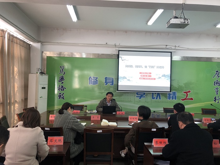 11月10日下午,在北校区化工学院201会议室,学院党委书记高健以“树师德、扬师风、做‘四有’好老师”为题讲授师德师风主题党课,学院全体教师参加。
