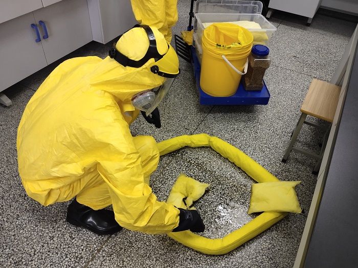 据悉,本次演练为学校第三届“实验室安全文明月”系列活动之一,由betway西汉姆联官网承办。演练模拟某实验室1名学生在实验过程中不慎碰倒甲苯试剂瓶,掉落地面造成甲苯泄漏事故,由此展开应急演练。演练科目包括事故发生、信息报送、启动响应、应急处置等,应急处置科目设置警戒疏散、医疗救护和现场处置3个场景。本次演练准备充分、贴近实战、处置成功,达到了检验预案、锻炼队伍、磨合机制的目的。